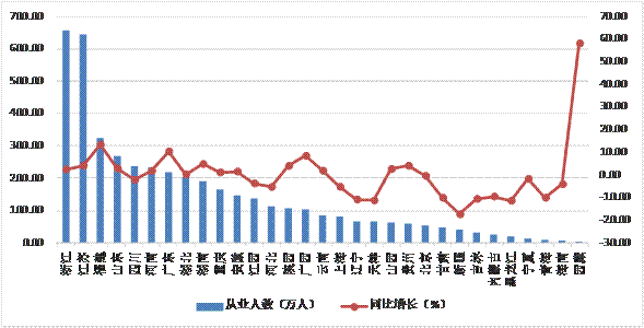 圖5  2018年上半年各地區建筑業從業人數及增速