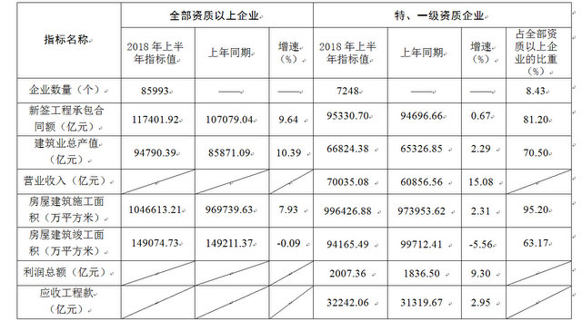 中國建筑業協會于9月14日發布《2018年上半年建筑業發展統計分析》。