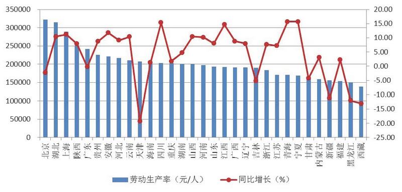 圖6  2018年上半年各地區按建筑業總產值計算的勞動生產率及增速