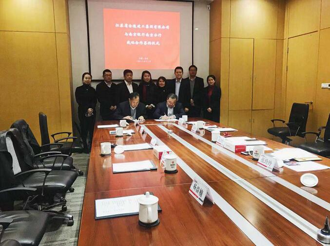 2018年12月13日江蘇省金陵建工集團有限公司與南京銀行南京分行舉行戰略合作簽約儀式。集團公司董事長范廣峰,總經理程希,副總經理封昌青,風險投資部經理王敏捷,南京銀行業務總監、分行行長宋清松,分行副行長張玲玲,授信審批部總經理吳穎輝,公司金融部副總經理吳根寶,以及城東中心支行負責人等參加了簽約儀式。